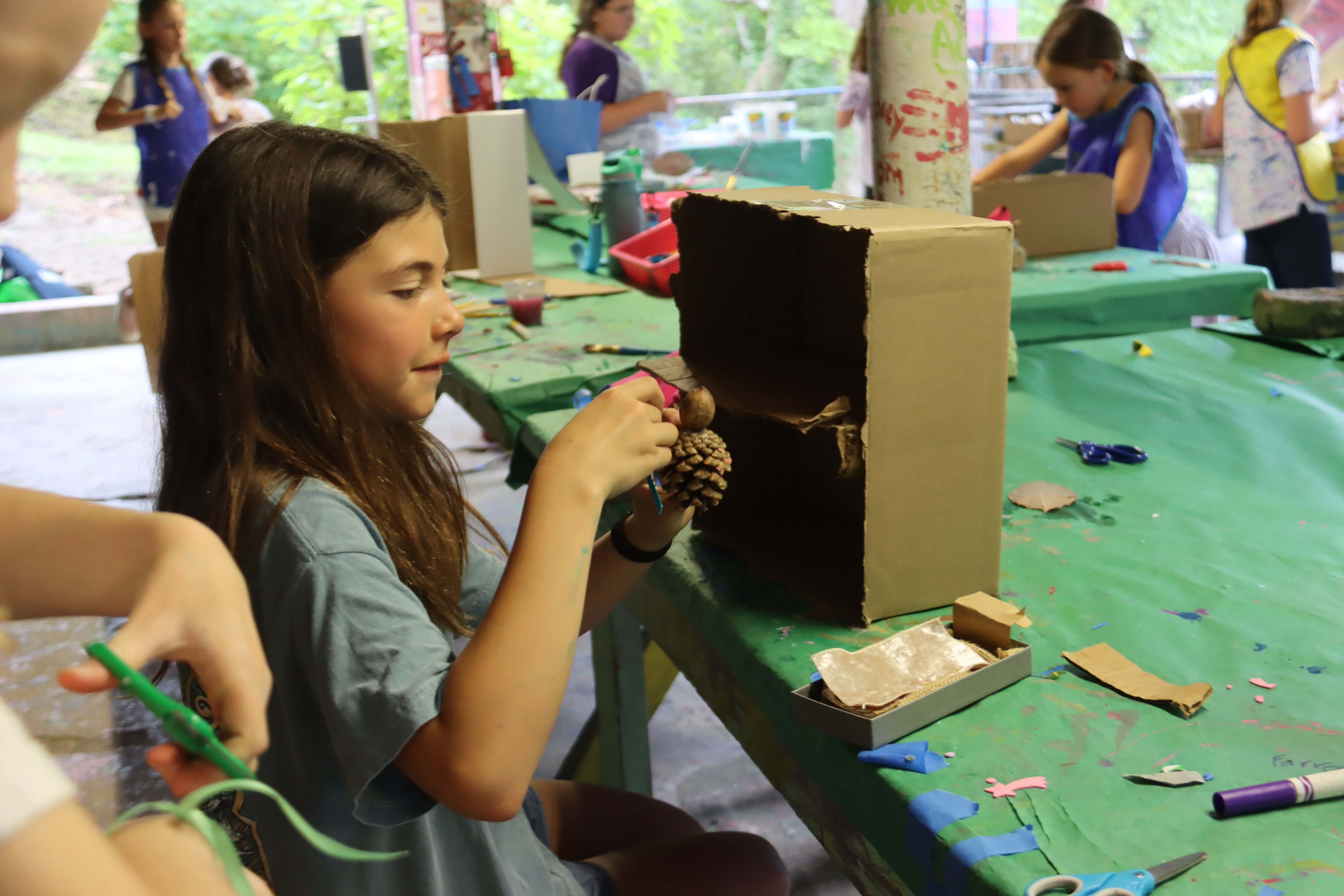 Arts and Crafts girls have been busy making all kind of crafts using nature as they’re main tool. It has been fun to see the creative juices flowing. We have a mom of one of our past camper/counselors that is teaching the girls and she really has them inthralled allowing them to use sticks, pinecones, flowers and maybe a little hot glue. Amazing!