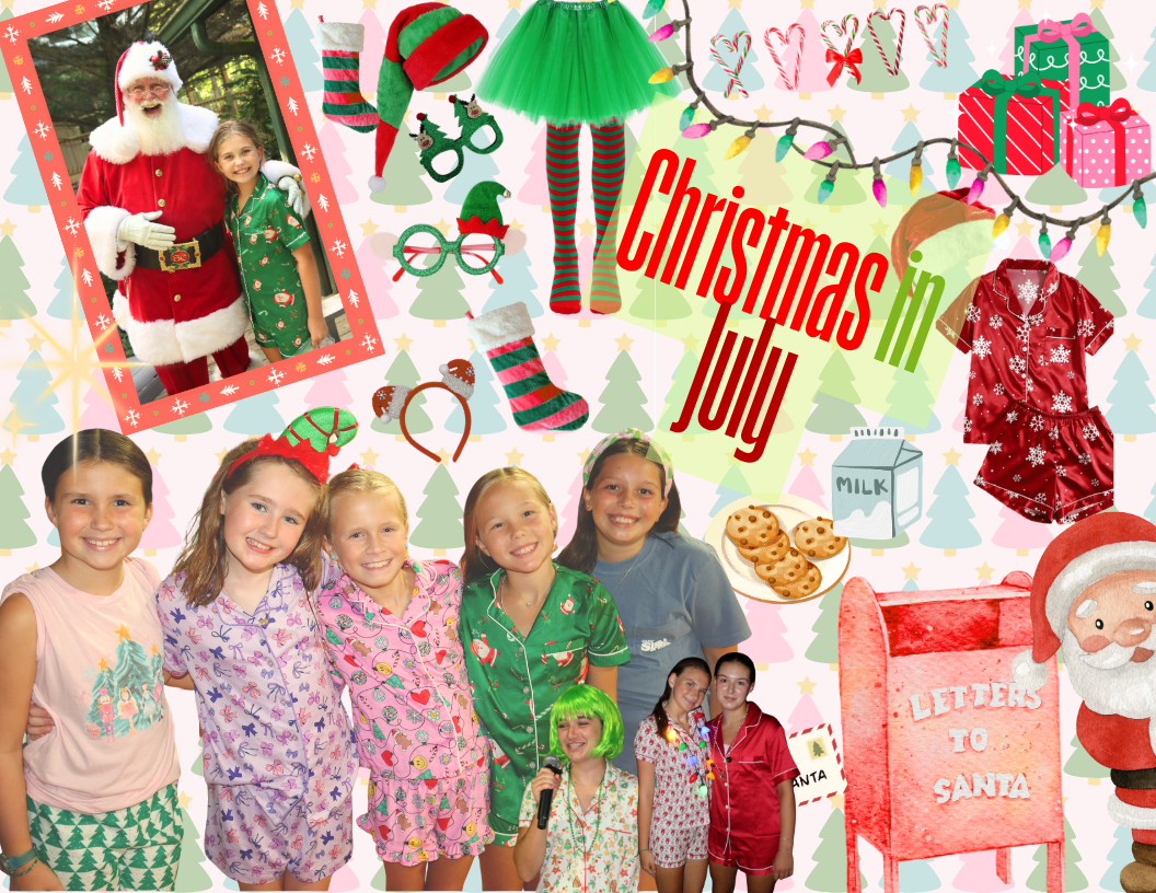 4TH SESSION: Who says you have to wait until December? During Christmas in July, camp transforms into a summer holiday wonderland. Early in the week, cabins deck the halls with decorations and compete in a festive door-wrapping contest. Saturday brings “Christmas Eve,” filled with cozy, creative fun—writing letters, enjoying milk and cookies, making friendship bracelets, and more. On “Christmas morning,” campers head to the gym in their pajamas, where Santa makes a special appearance to read a Christmas story and hand out candy canes. It’s christmas magic without the snow!