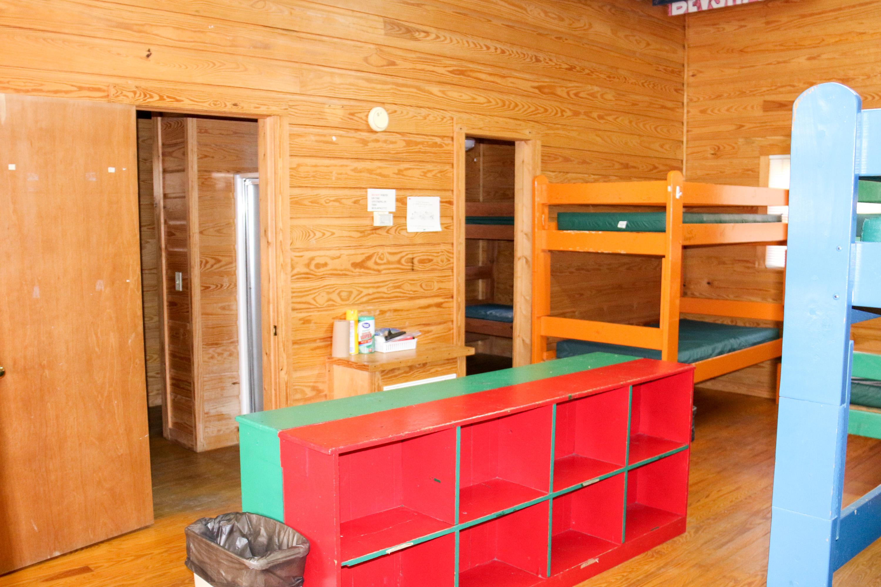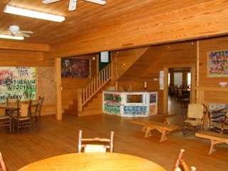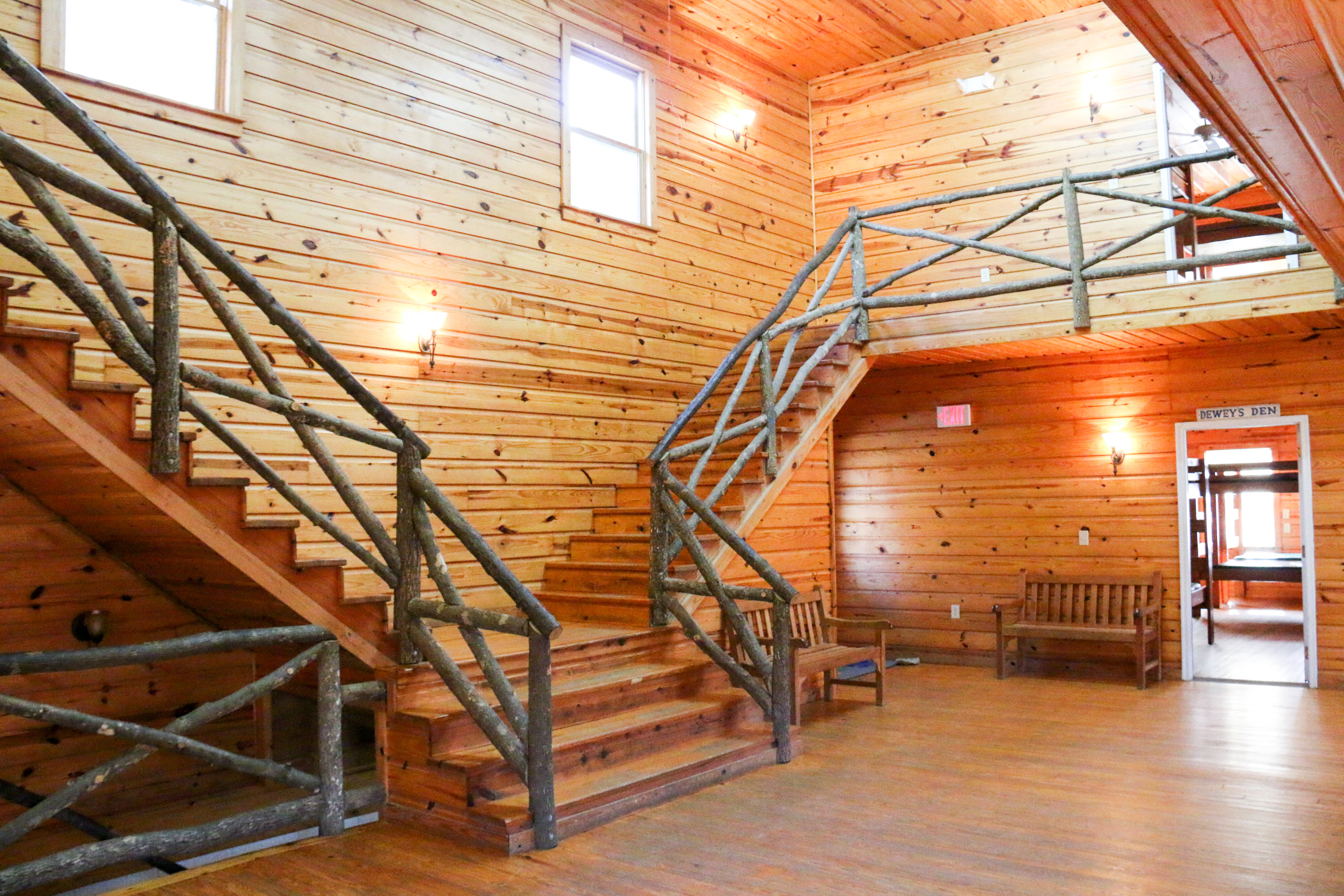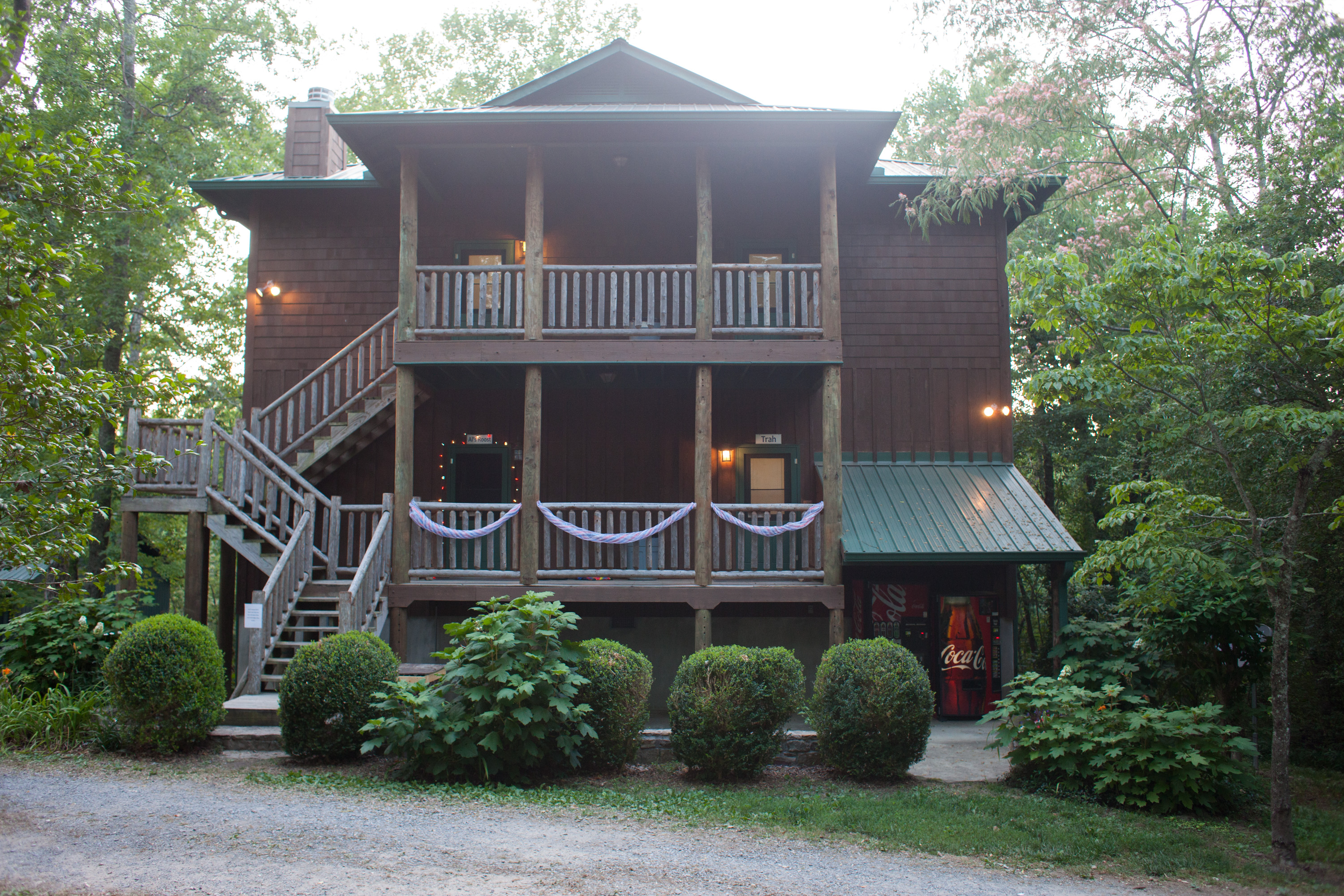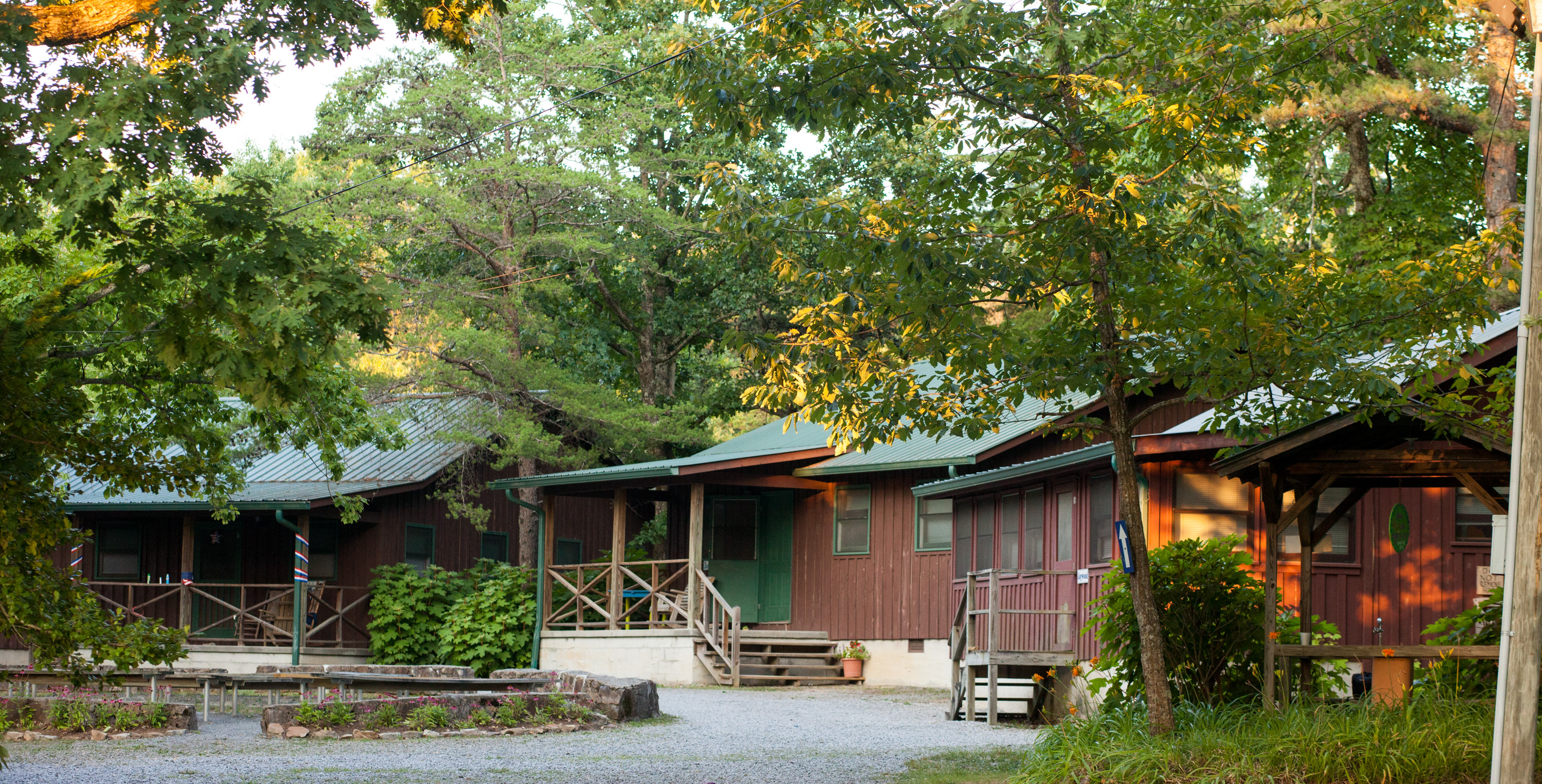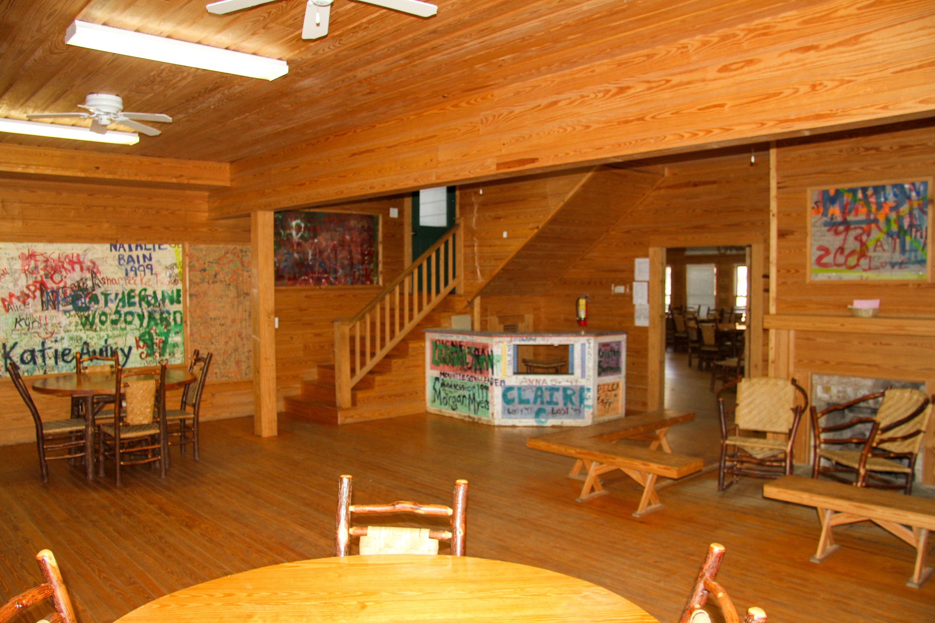 This building has 23 individual rooms and holds up to 102 people. Each room holds 4 to 6 people and includes a bathroom. Riverside has its own kitchen and dining facility that is also used as a meeting area as well as a large lobby. Theres also a campfire area right in front of Riverside with benches.