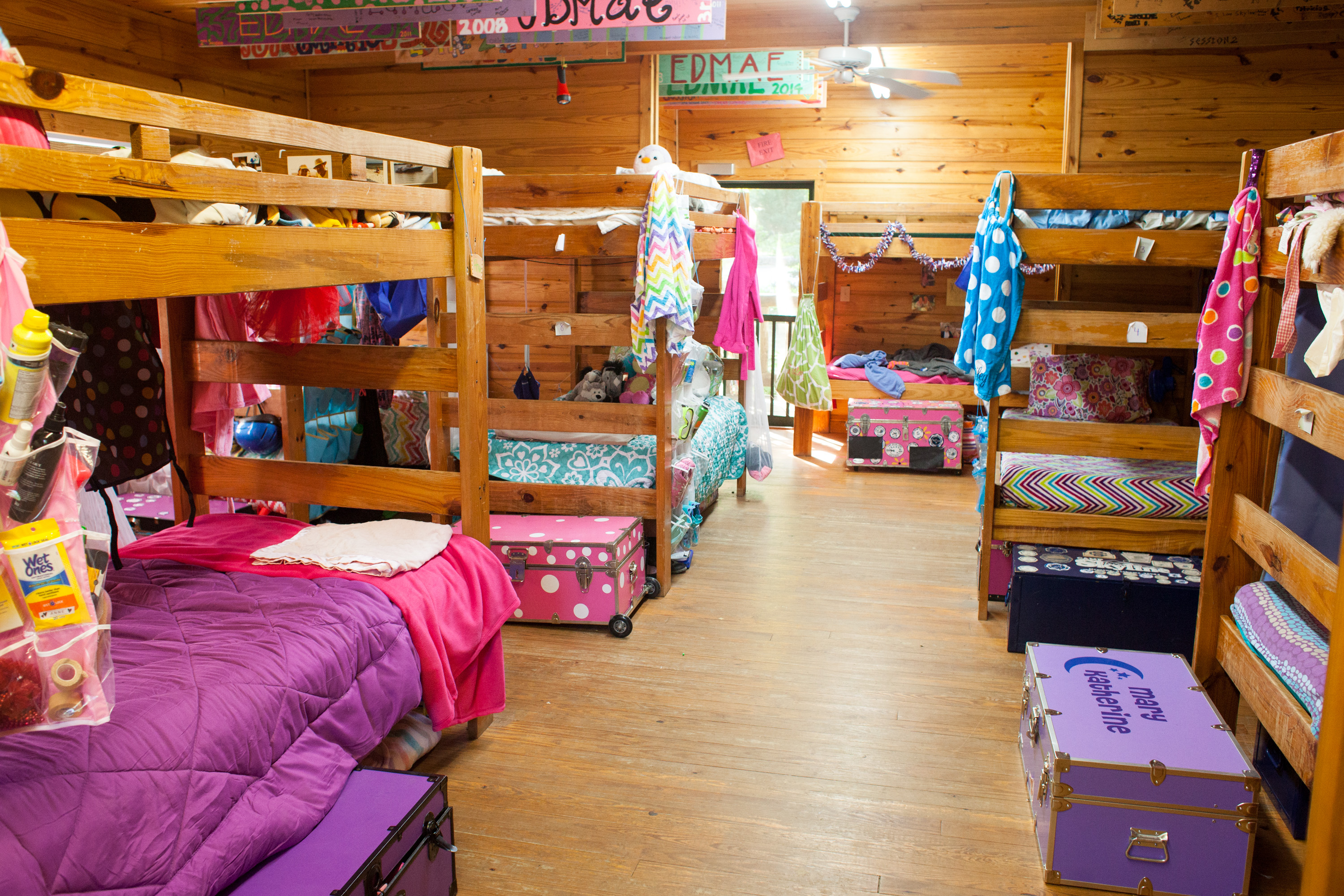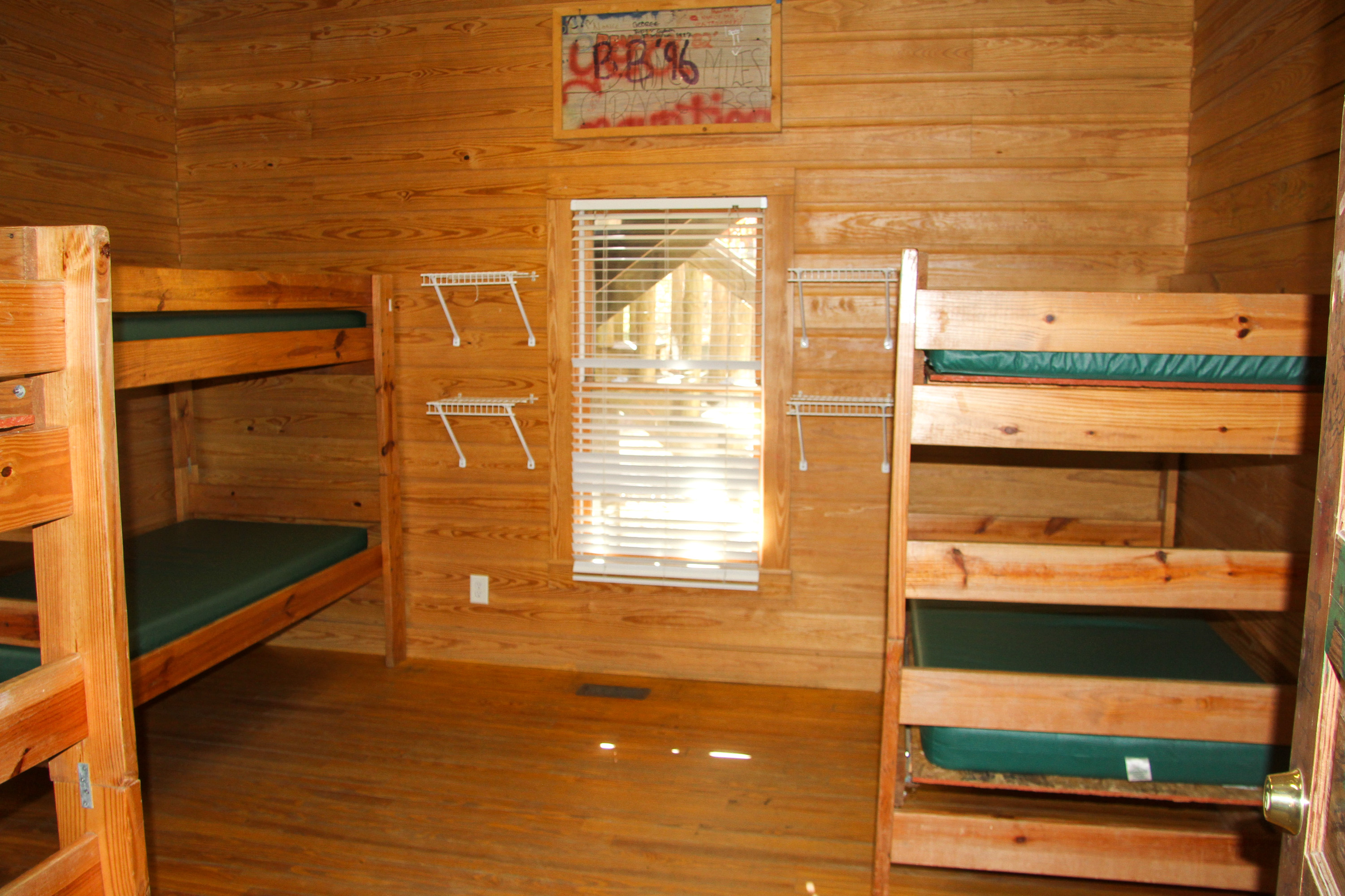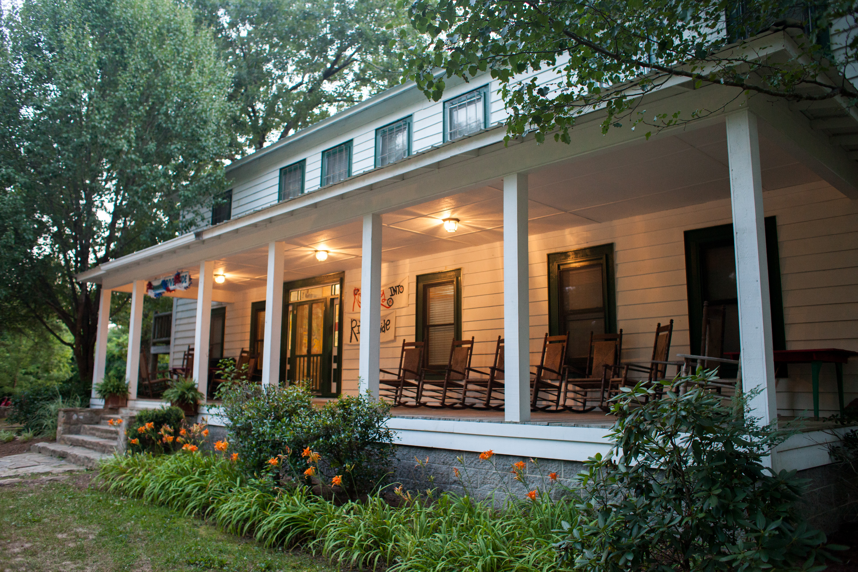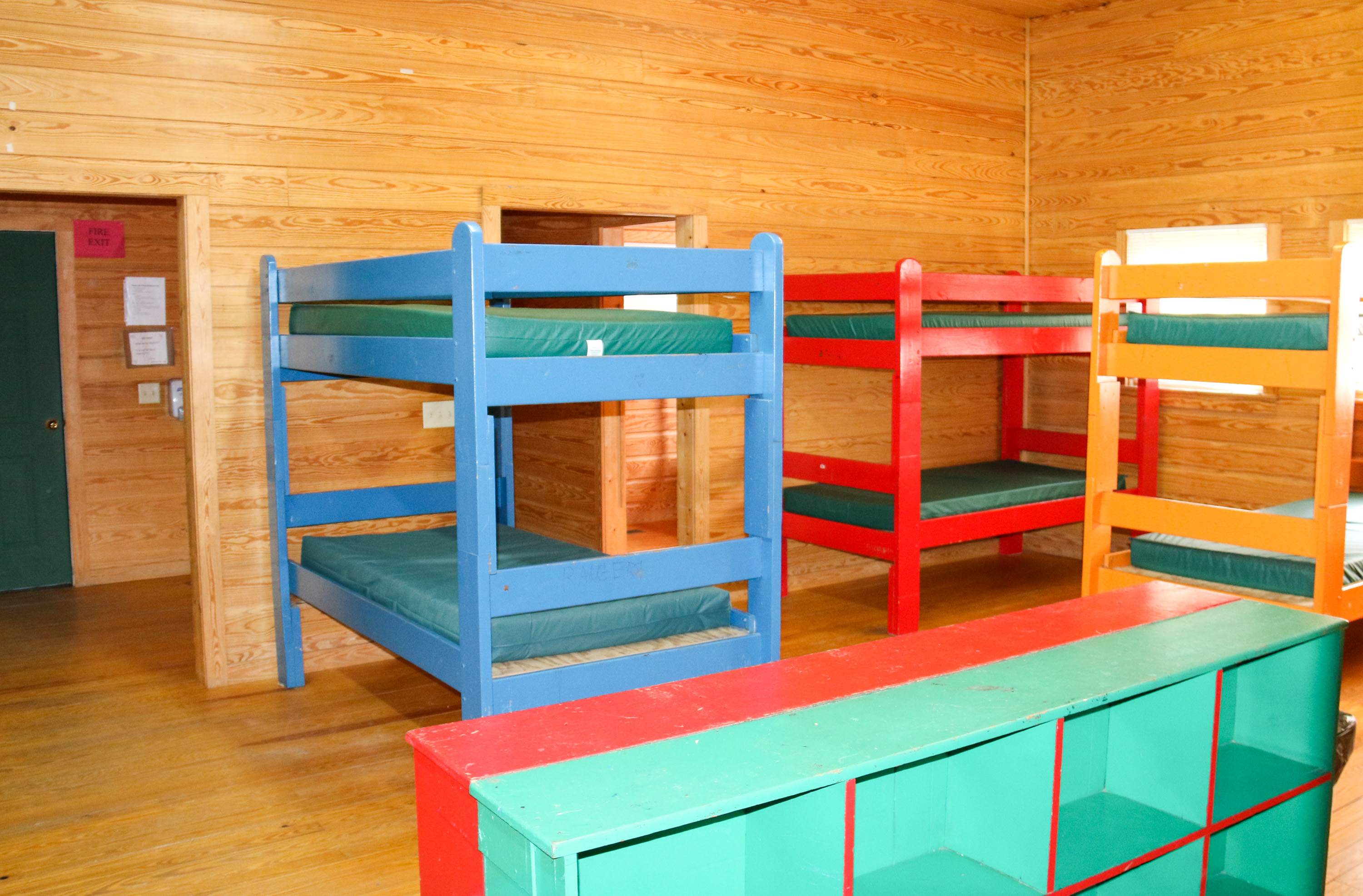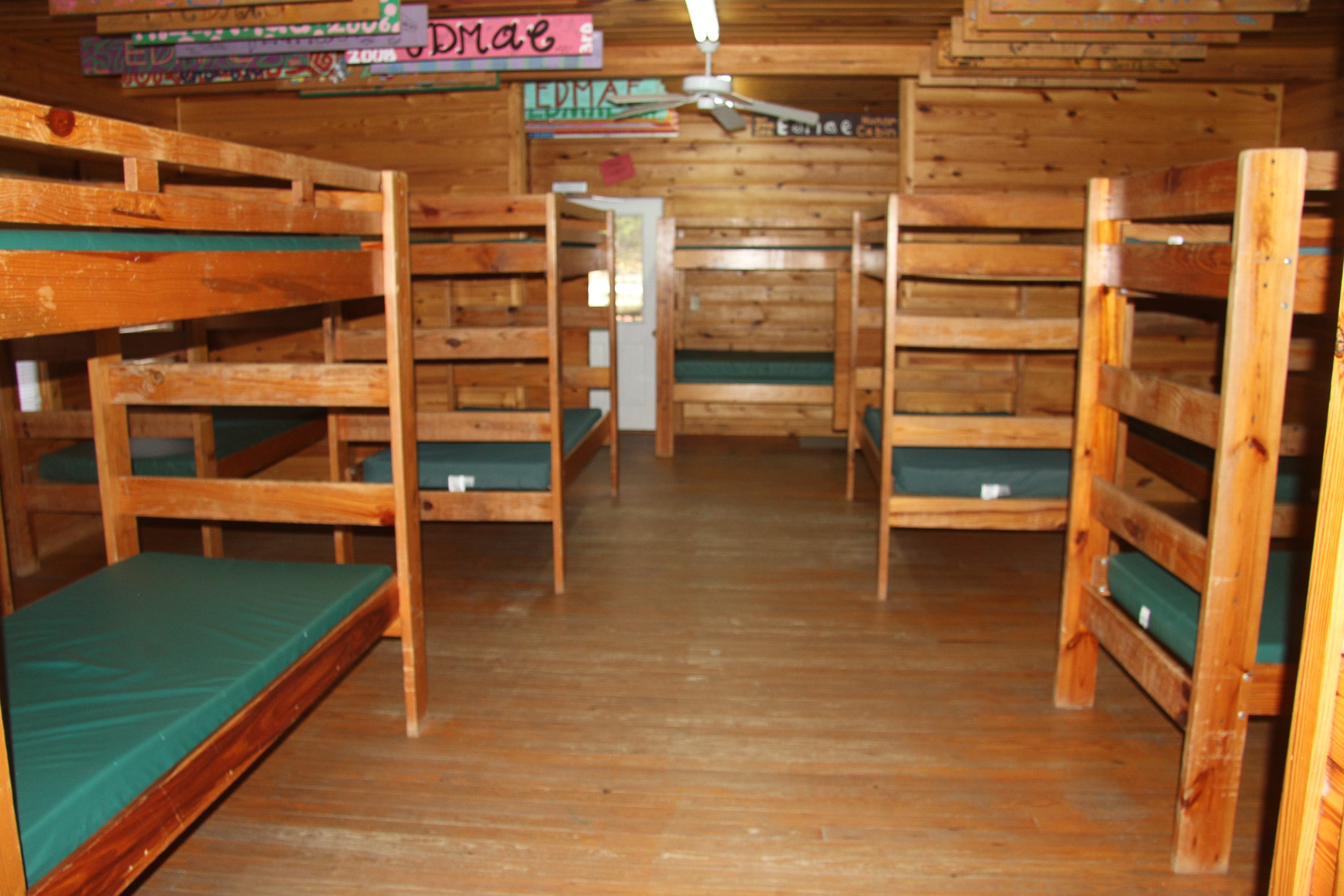 This building has 23 individual rooms and holds up to 102 people. Each room holds 4 to 6 people and includes a bathroom. Riverside has its own kitchen and dining facility that is also used as a meeting area as well as a large lobby. Theres also a campfire area right in front of Riverside with benches.